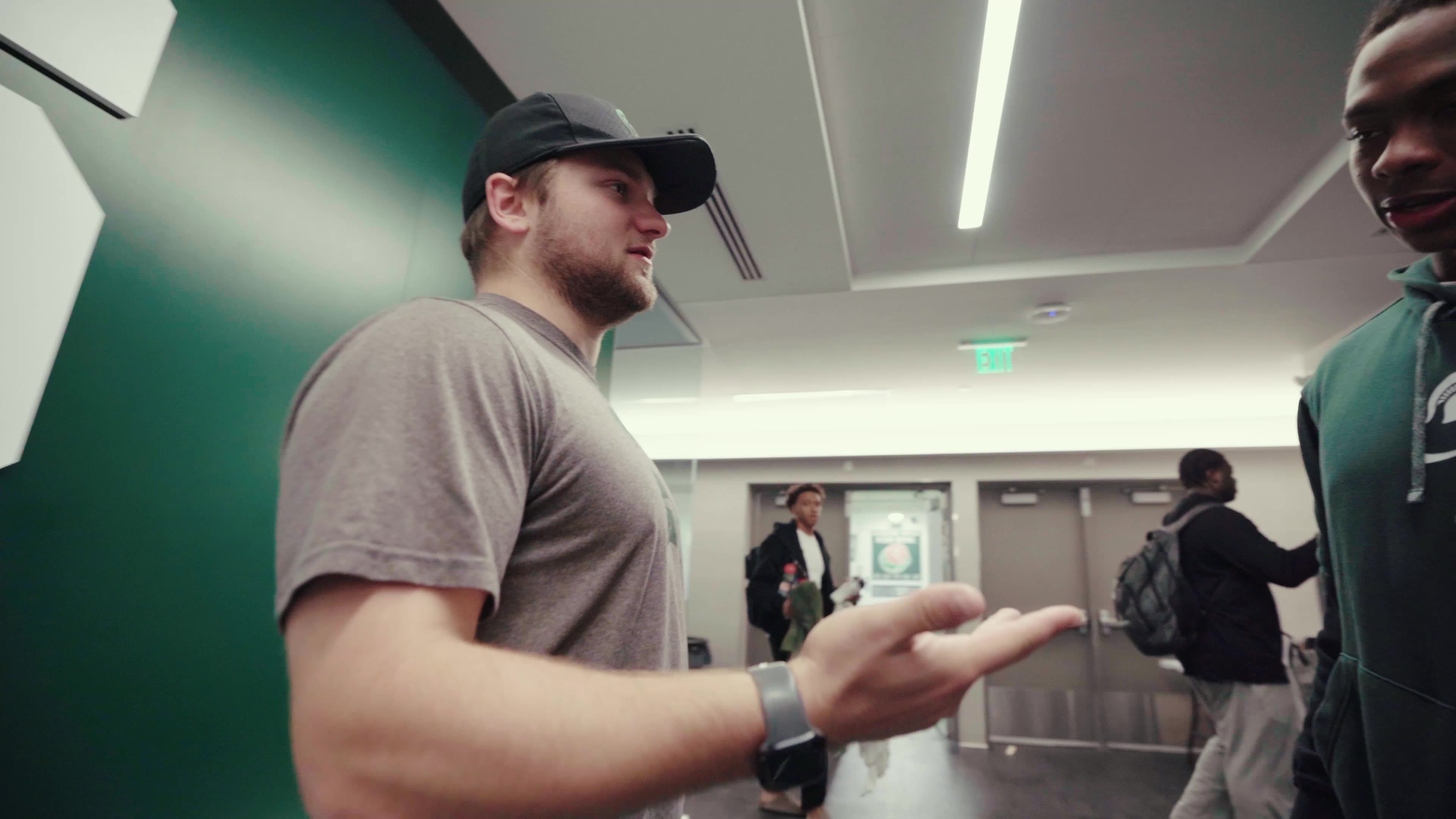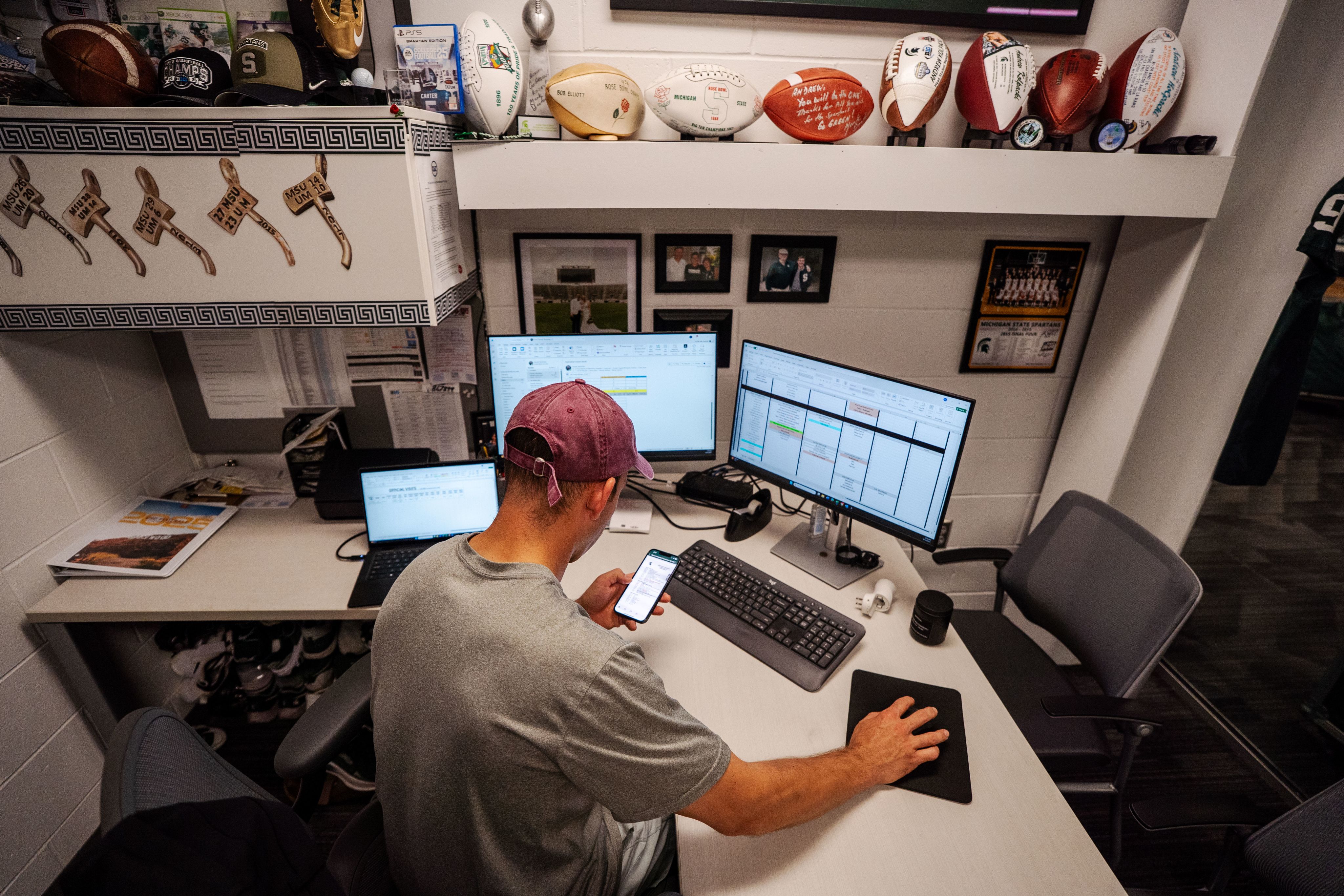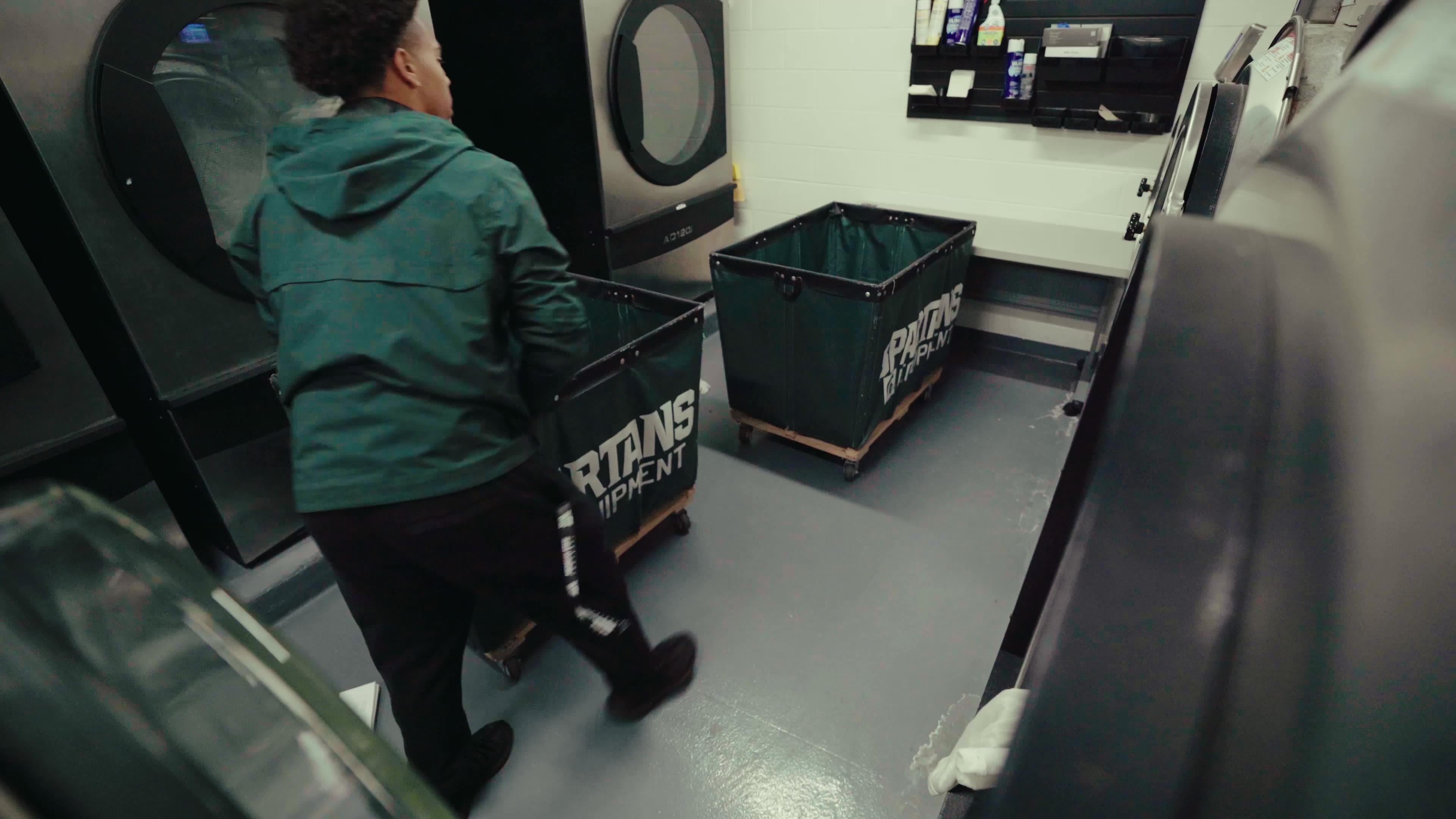 They all have to keep trekking forward, even though they are busy, full-time Michigan State students. Most of their work happens between classes. Student managers juggle leaving the equipment room for lectures, then return to help finish tasks for the team.