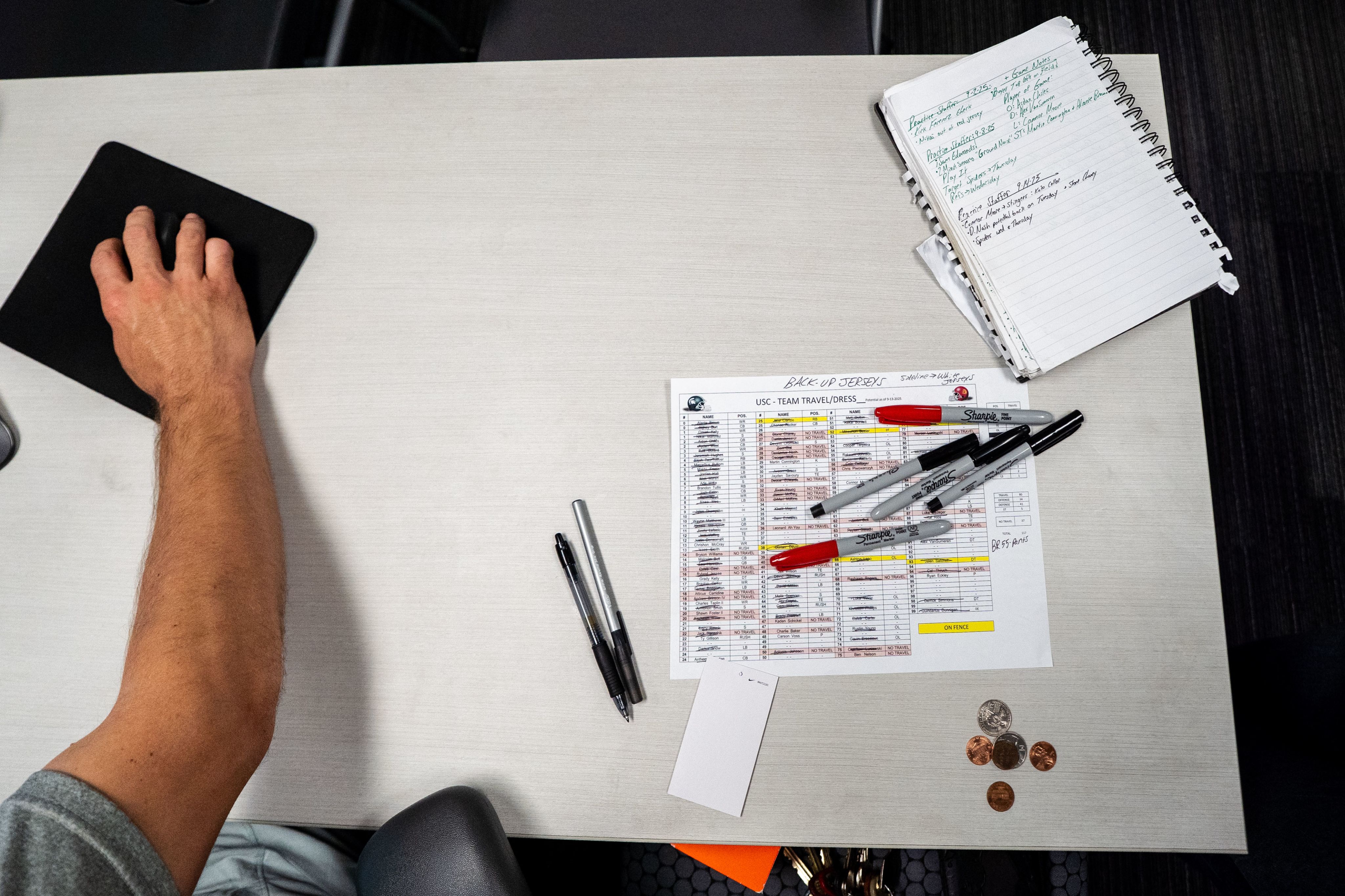 For trips like USC, members of the equipment staff arrive days ahead of the team, building an environment that feels familiar before the team arrives.