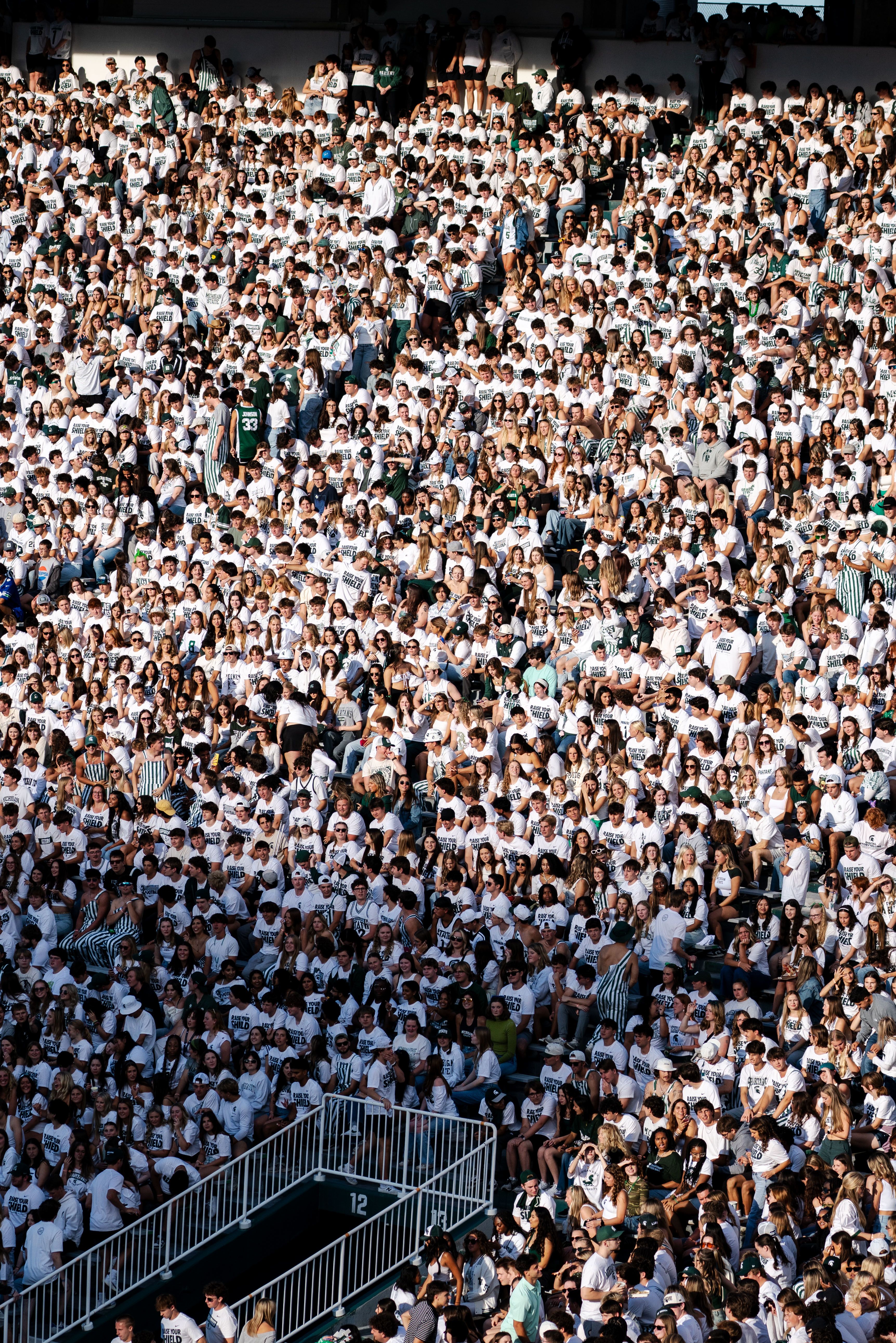 Michigan State’s student section participates in the “Stripe the Stadium” game against Western Michigan at Spartan Stadium on Aug. 29, 2025. The Spartans won 23–6.