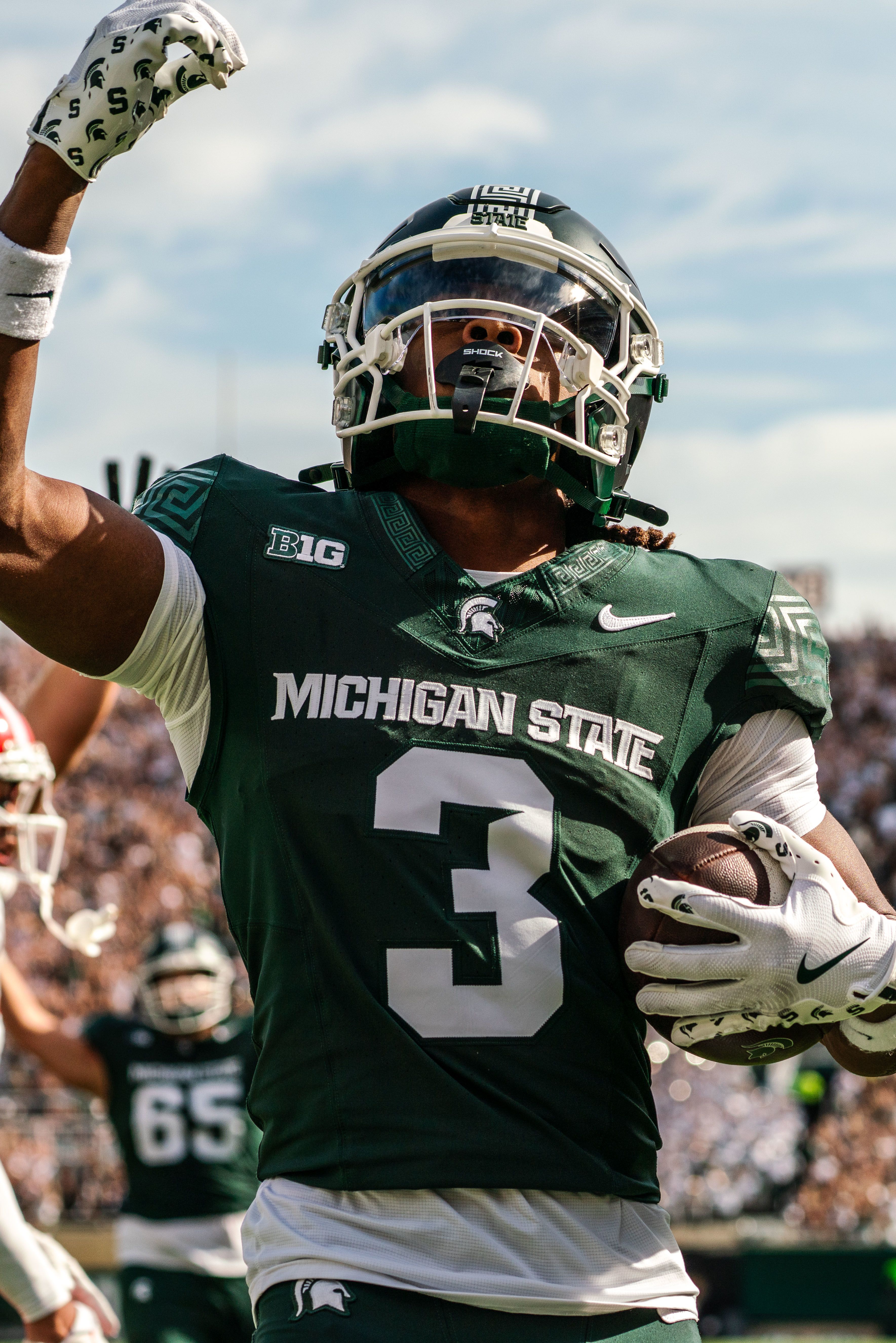 Michigan State wide receiver Rodney Bullard Jr. (3) scores a touchdown against Youngstown State at Spartan Stadium on Sept. 13, 2025.